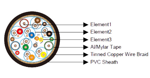 | INDIVIDUAL SHIELD | Aluminum/ mylar laminated tape applied with the metallic side down in electrical contact with a 28AWG tinned copper drain wire (7 strands formation). A 23 micron mylar tape is applied over the screening tape with a minimum 25% overlap.  |