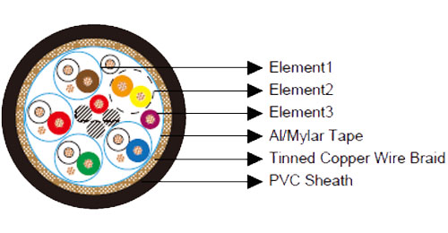 | INDIVIDUAL SHIELD | Aluminum/ mylar laminated tape applied with the metallic side down in electrical contact with a 28AWG tinned copper drain wire (7 strands formation). A 23 micron mylar tape is applied over the screening tape with a minimum 25% overlap.  |