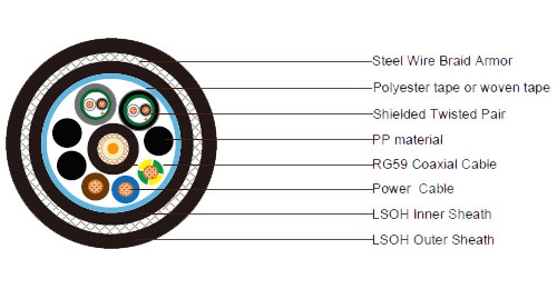 2x1x2x24AWG Shielded Twisted Pair (around coaxial cable)